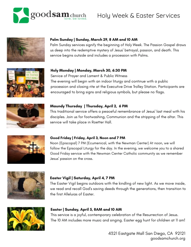 Join us online weekdays at 7 am and 8 pm for Morning Prayer and Night Prayer (Compline) on the Good Samaritan Episcopal Church Facebook page (top post).
